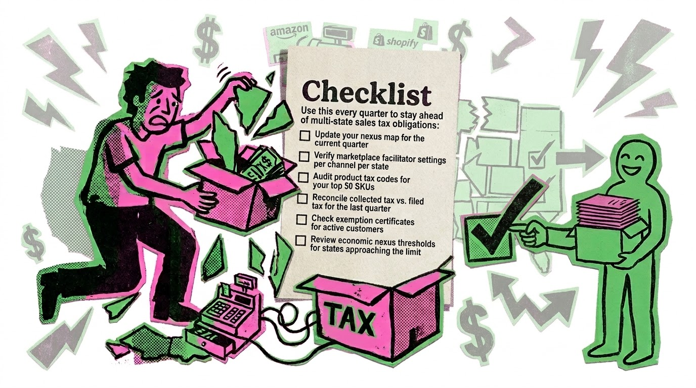 A simple quarterly checklist can turn multi-state sales tax from scattered guesswork into a cleaner, more manageable process.