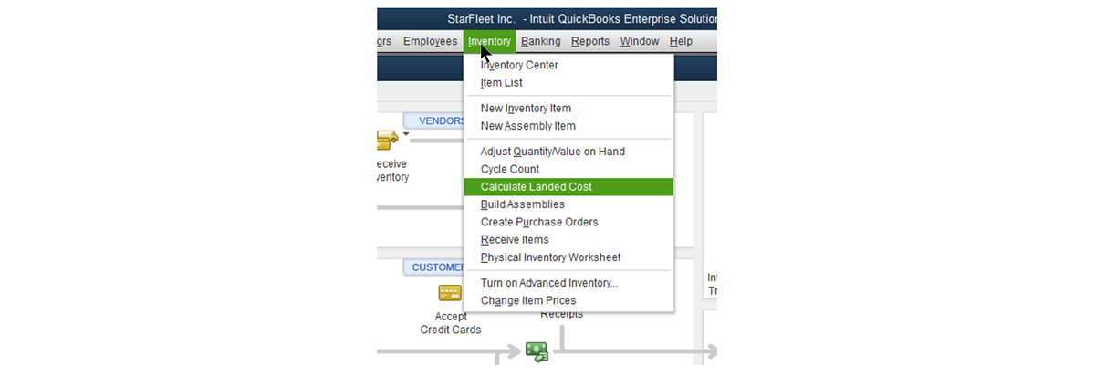 Accessing the Calculate Landed Cost feature in QuickBooks Enterprise