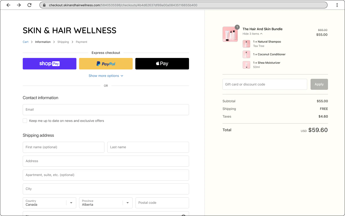 Alt text: Screenshot of a completed Shopify bundle during checkout